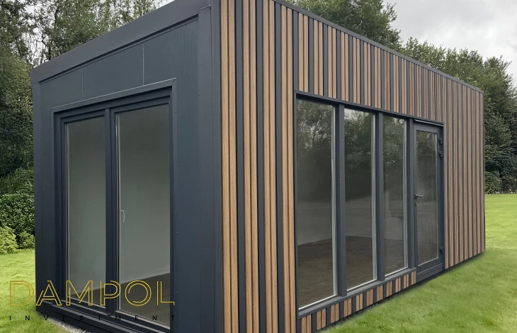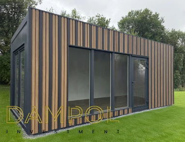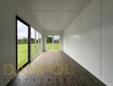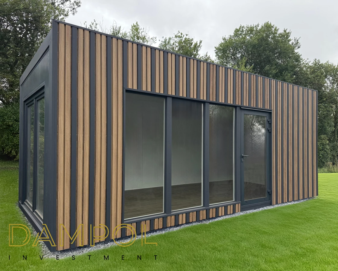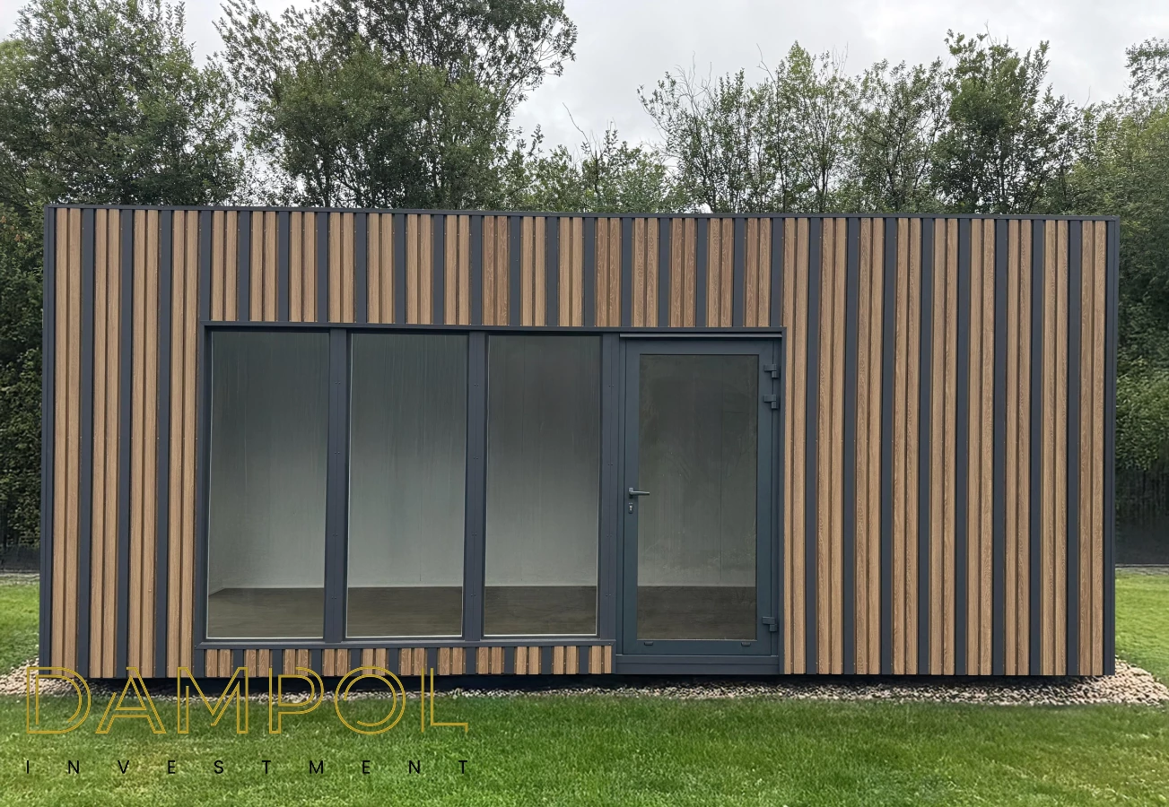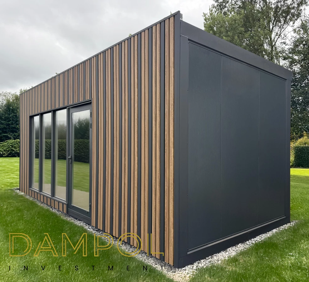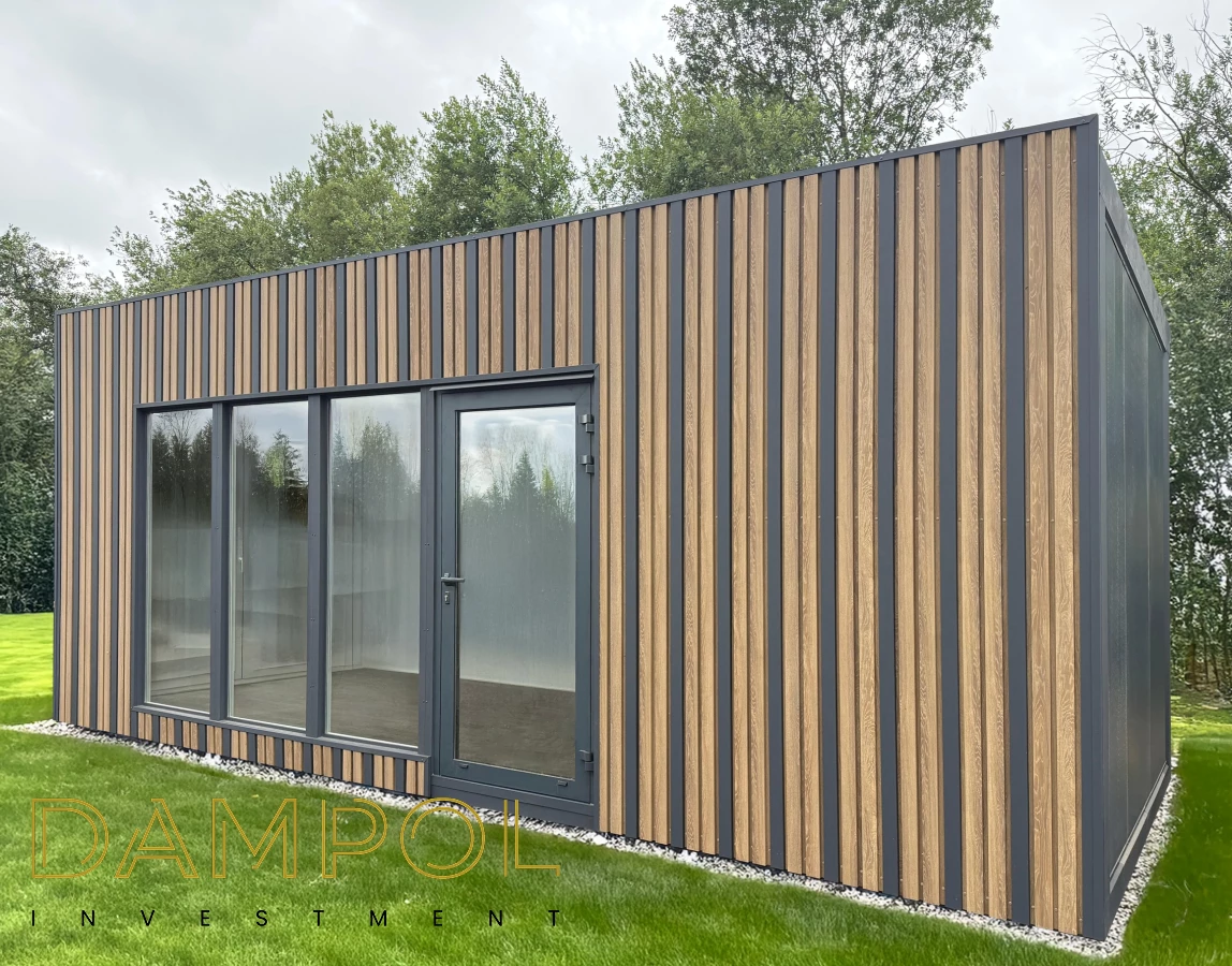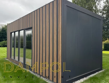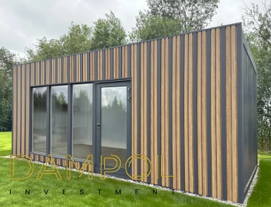Wysokość w środku 260->250, wykonany w całości z płyty warstwowej z rdzeniem poliuretanowym o grubości 10 cm. , wykonana na konstrukcji z kątownika 50x50x4