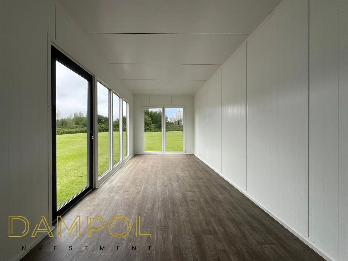 Instalacja elektryczna jednofazowa: 2 x podwójne gniazdko na tylnej ścianie, 2 x lampa led, wyprowadzenie instalacji elektrycznej.