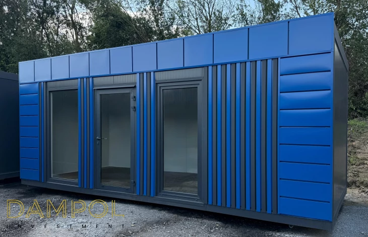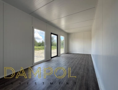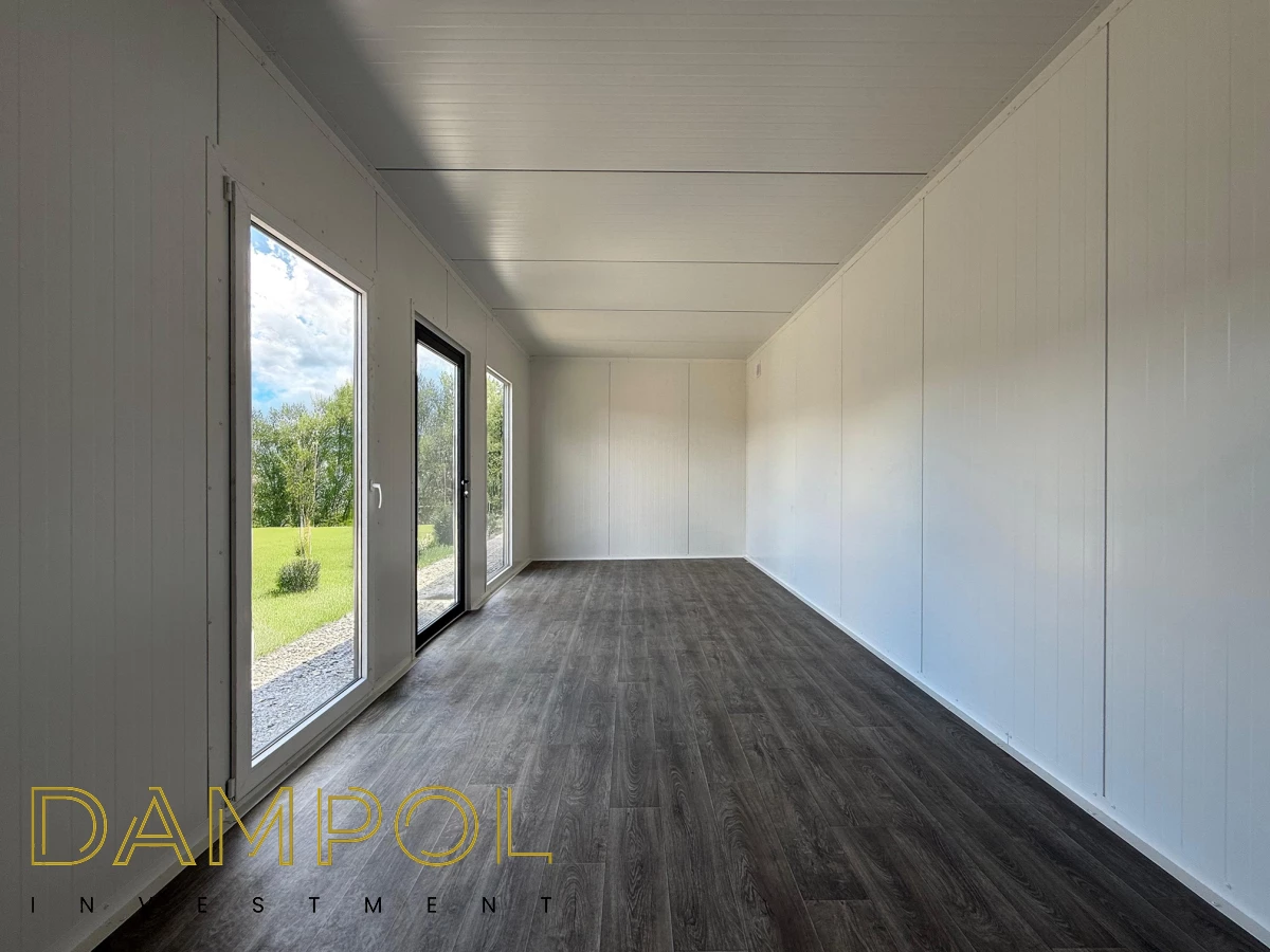 Pawilon 700x300, pianka , kątownik, wysokość w środku 260-250, drzwi aluminiowe przeszklone, okno balkonowe PCV 97x210, witryna (fix) 97x200
