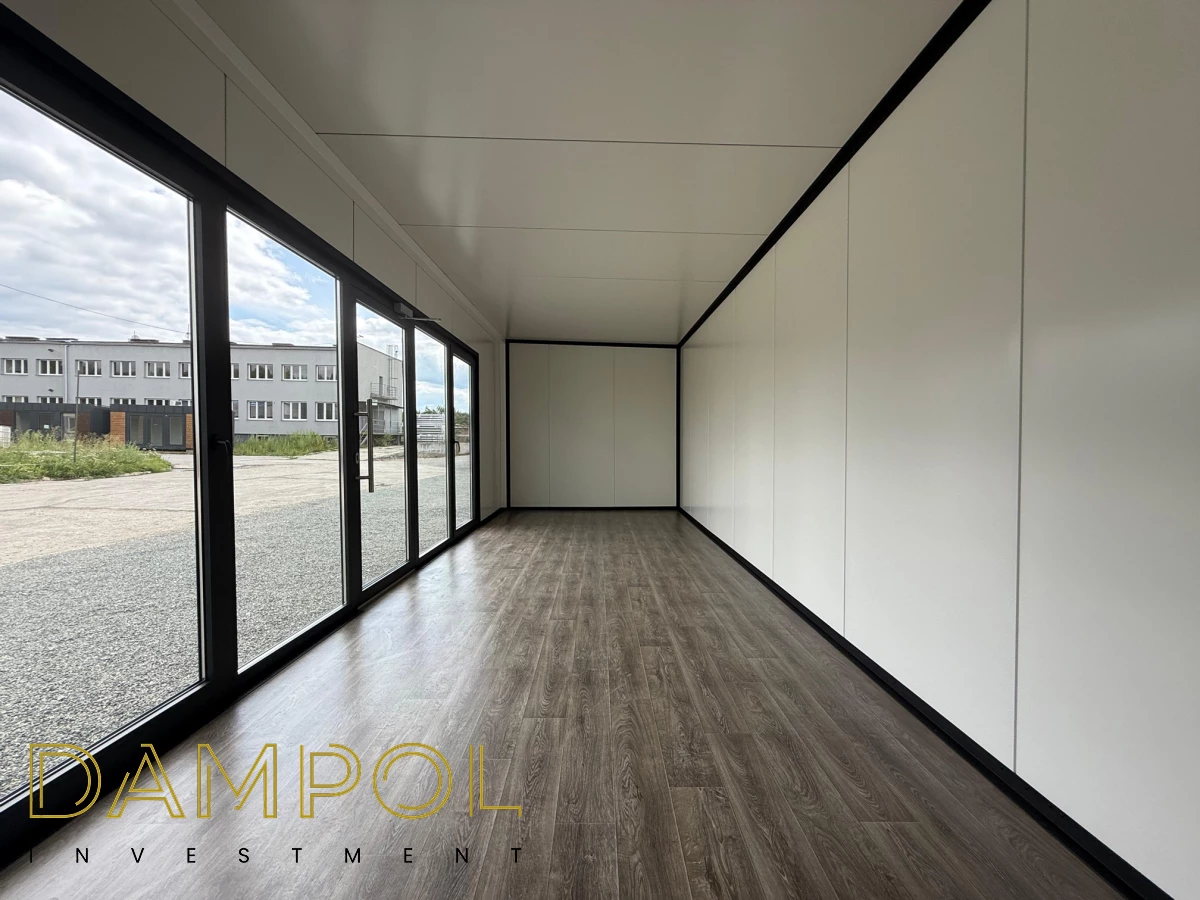 Instalacja elektryczna jednofazowa: 2 podwójne gniazdka na tylnej ścianie , 2 lampy, skrzynka z bezpiecznikami, wyprowadzenie instalacji elektrycznej.