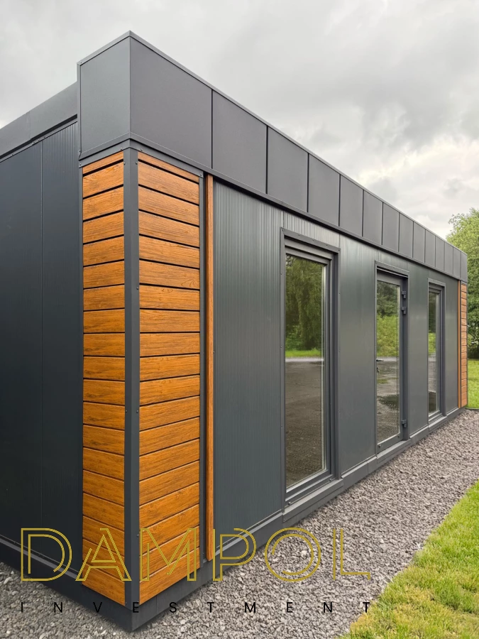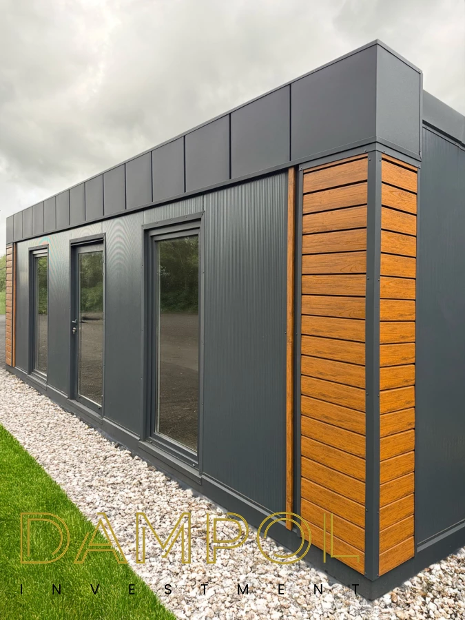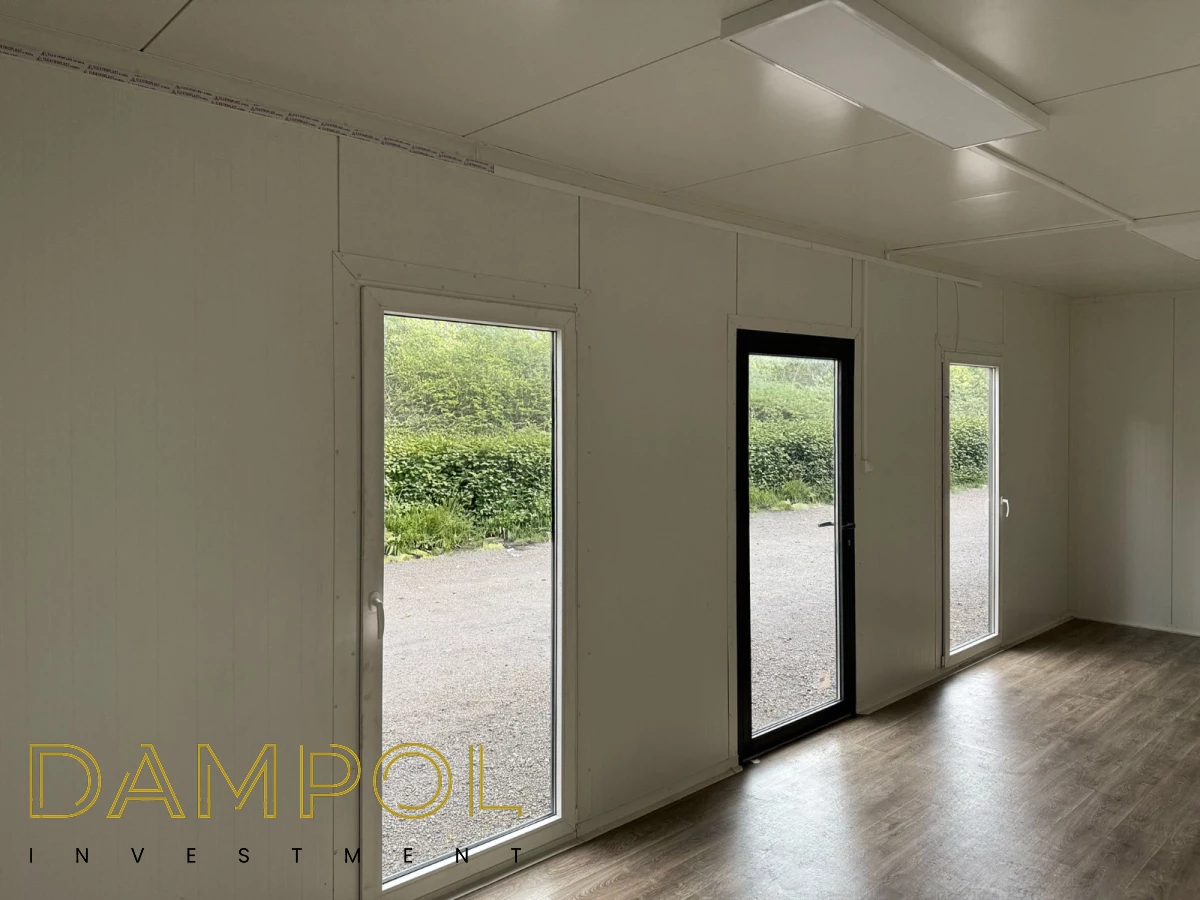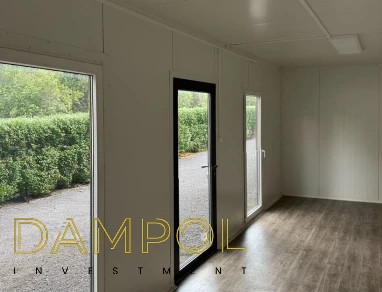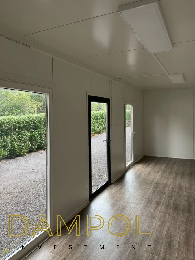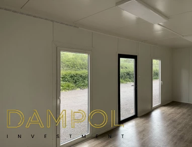 Drzwi Alu szkło, 2 x okno PCV 97x210, instalacja elektryczna jednofazowa (3 podwójne gniazdka plus gniazdko pod klimatyzację, 2 x lampa)