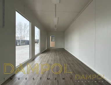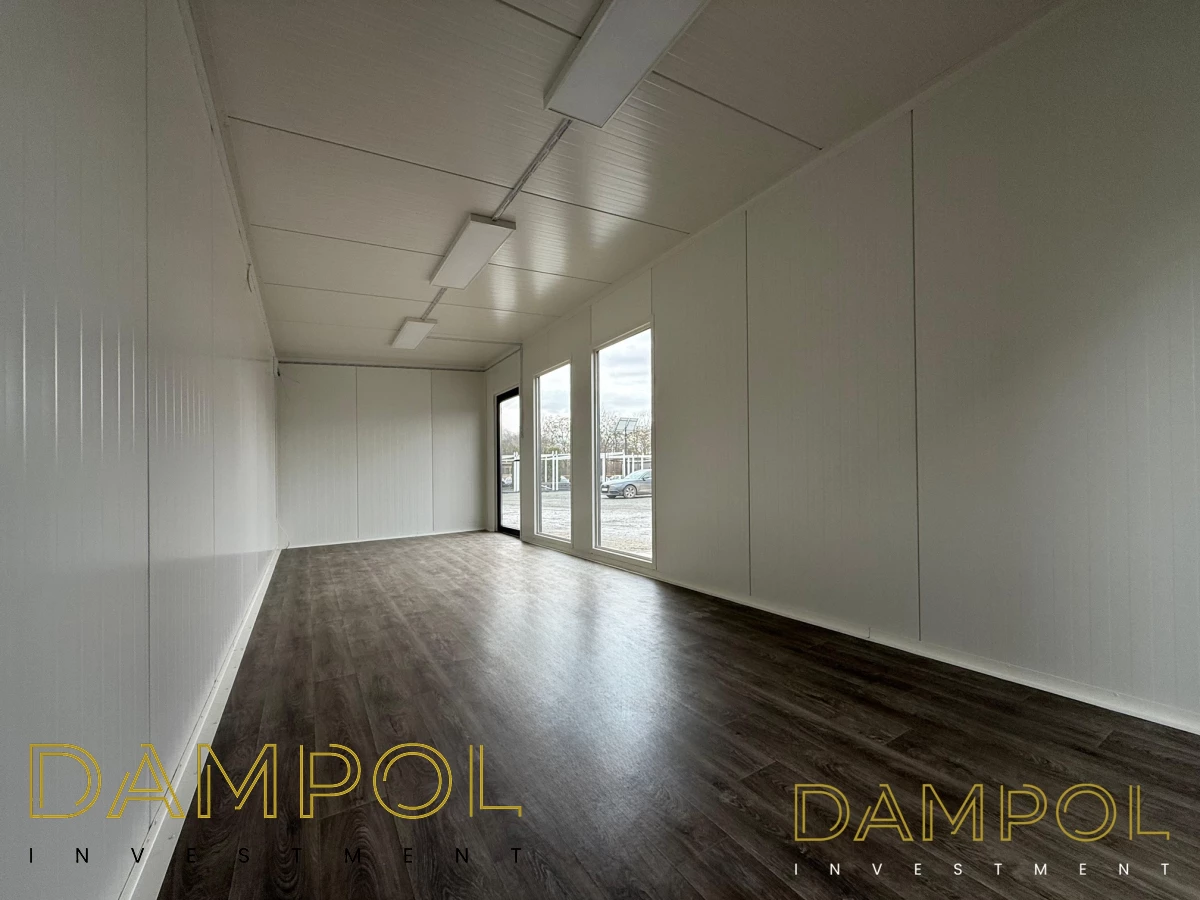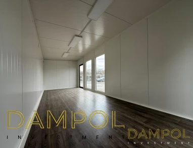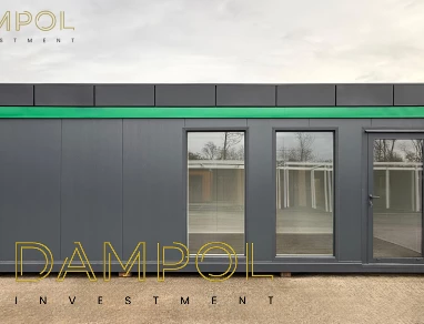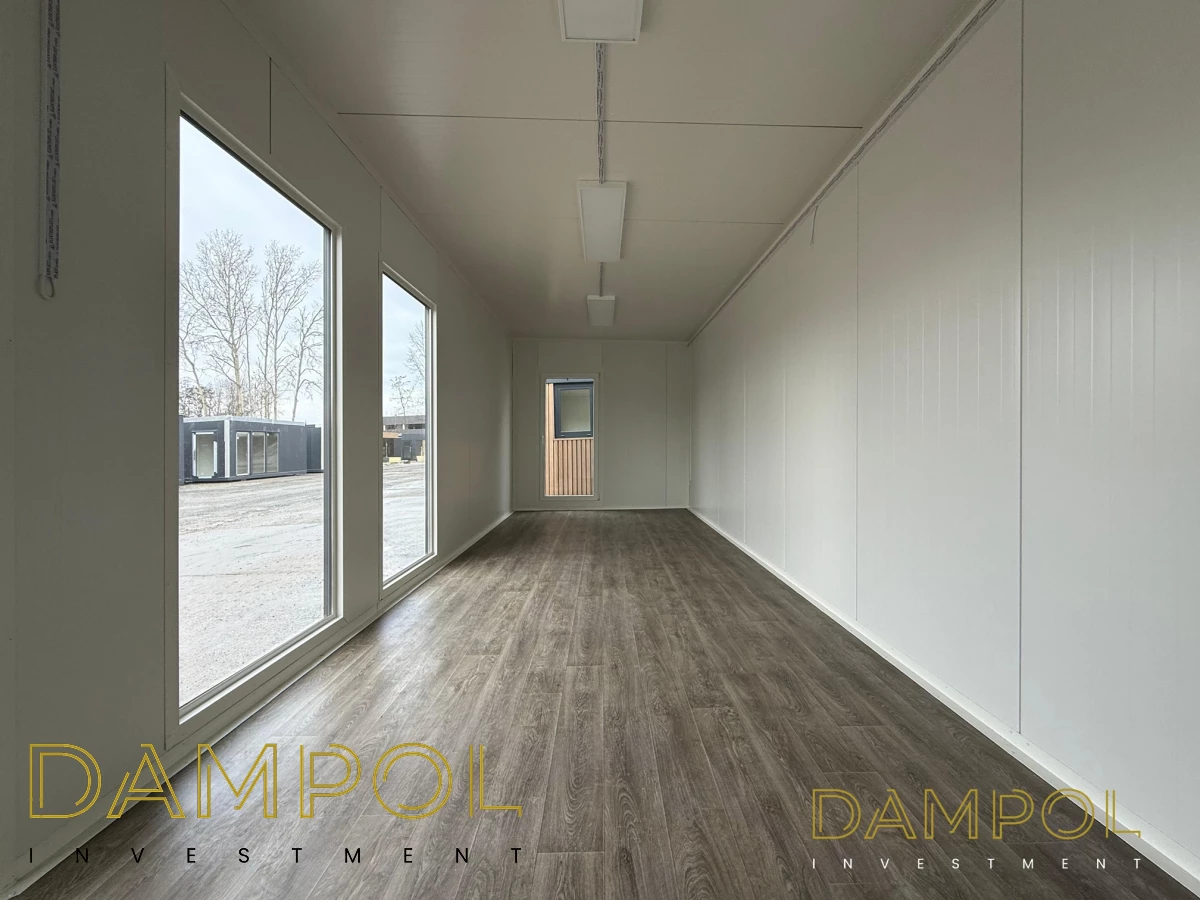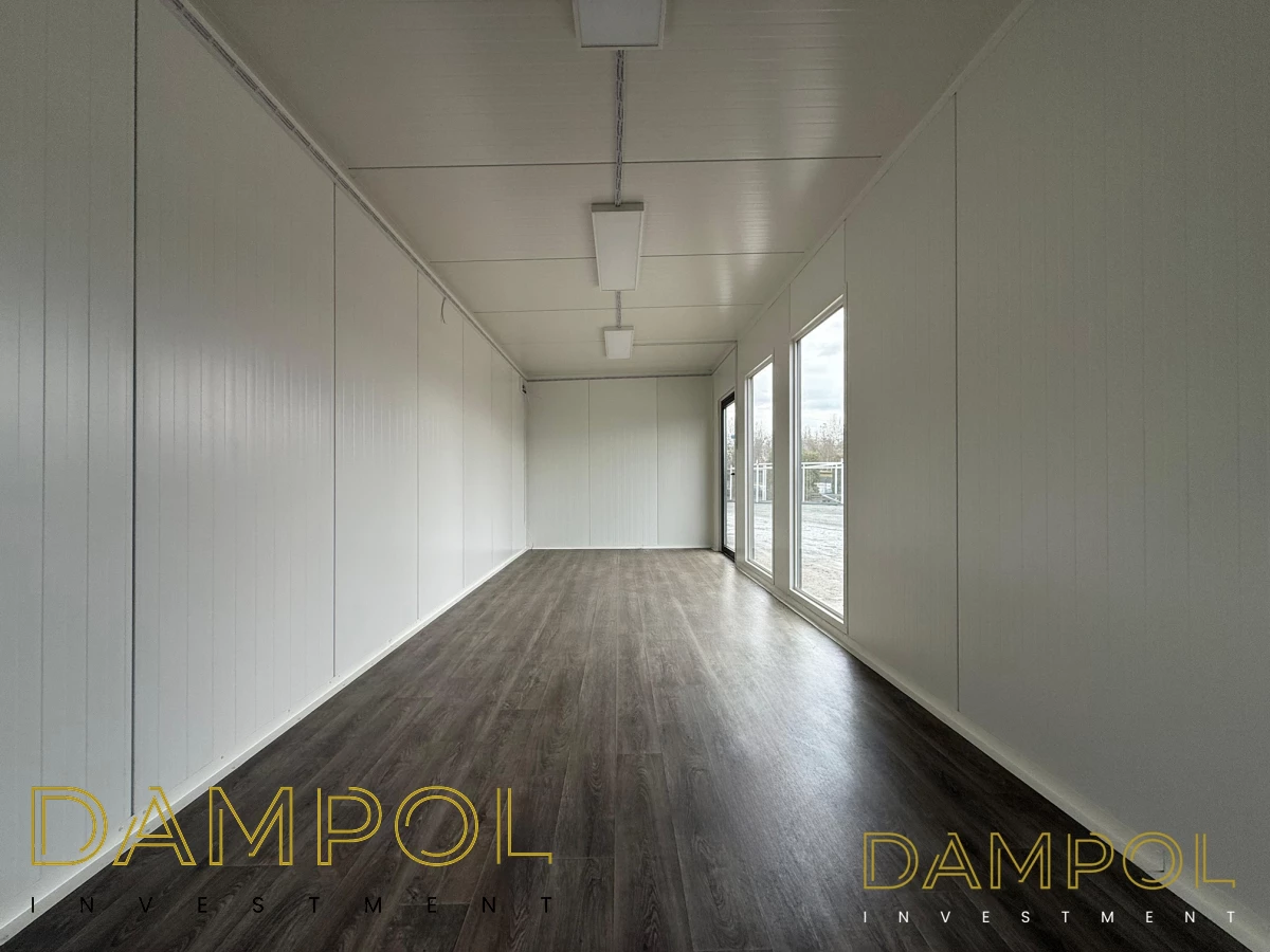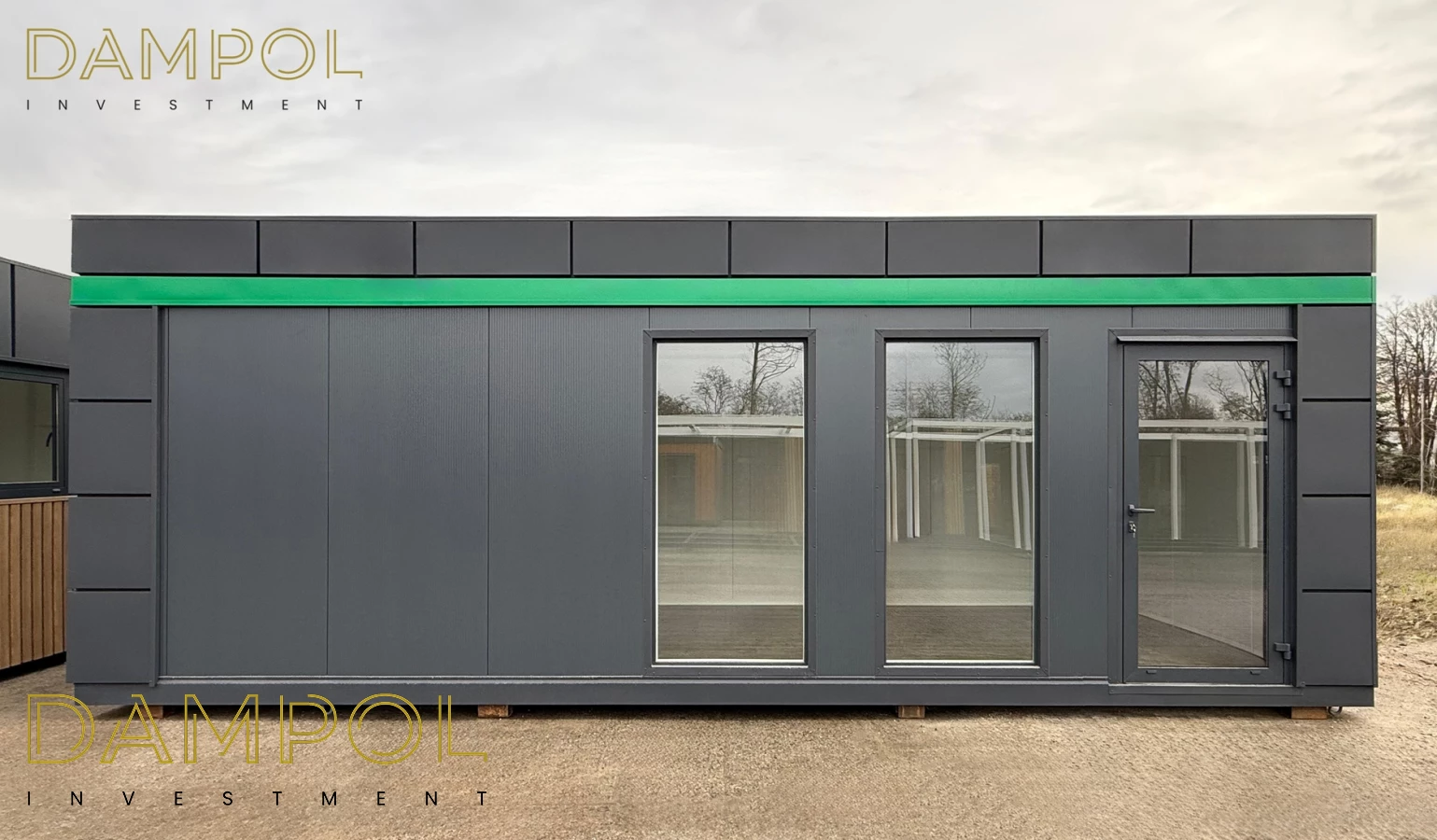 Na froncie: drzwi aluminiowe przeszklone, 12x szyba 97x200, Na lewym boku 1 x okno PCV 97x210