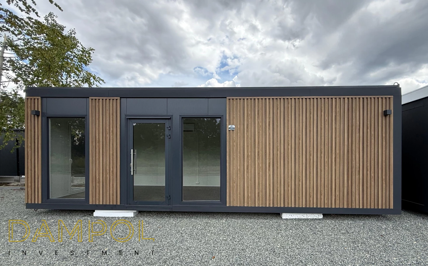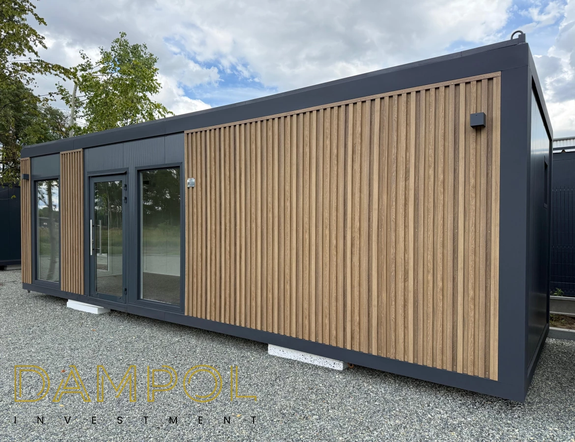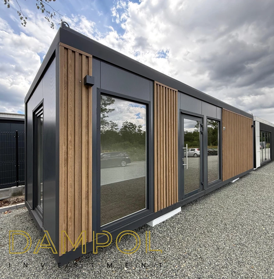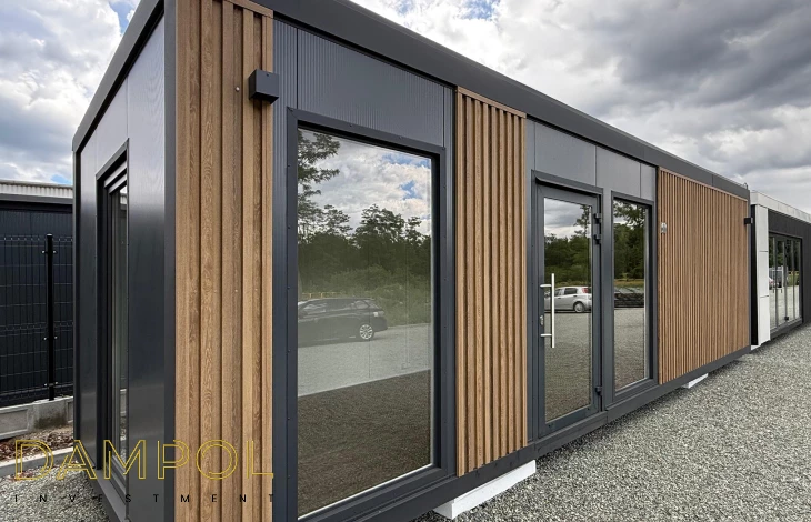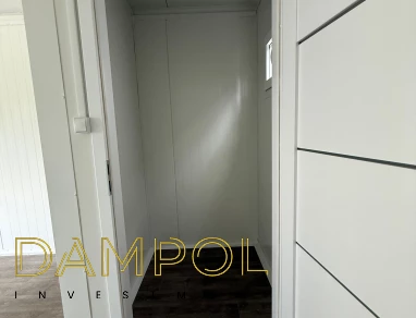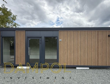 Drzwi aluminiowe z podchwytem i samozamykaczem, 2x szyba stała (fix), 1x okno balkonowe, wydzielone pomieszczenie z oknem PCV 50x50, instalacja elektryczna jednofazowa, 3 podwójne gniazdka, 3 lampy, 2x lampka zewnętrzna.