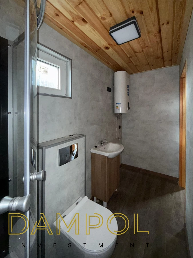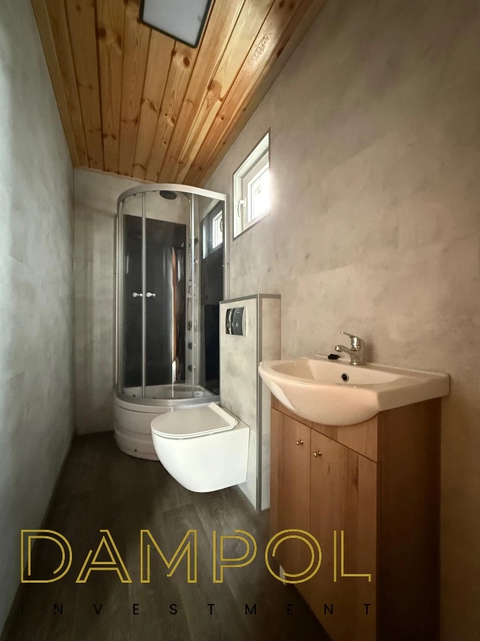 Aneks kuchenny 160 cm, łazienka z prysznicem (prysznic „80”) , toaleta (geberit), szafka z umywalką, miejsce pod pralkę, okno PCV 50x50.
