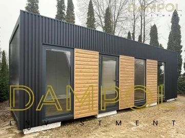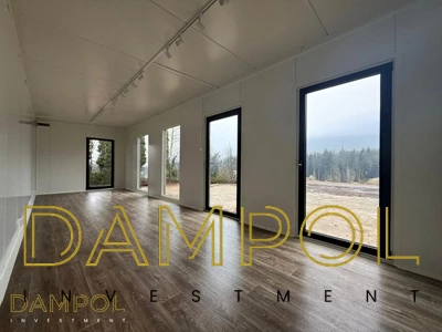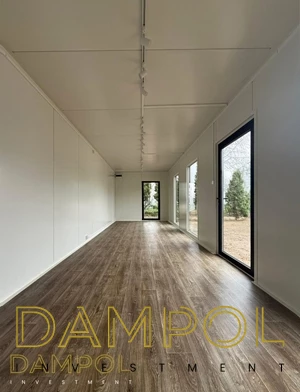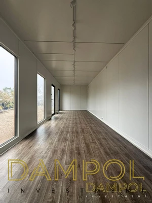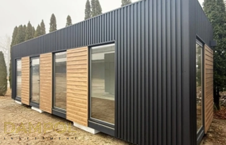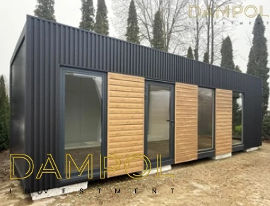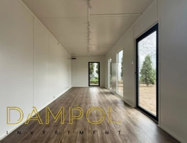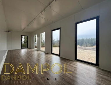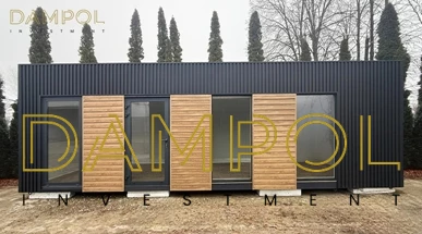 Na froncie: Drzwi aluminiowe przeszklone, okno aluminiowe balkonowe 97x210, 2x szyba 97x200, na prawym boku okno aluminiowe balkonowe 97x210.
