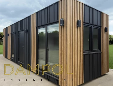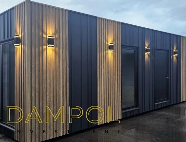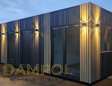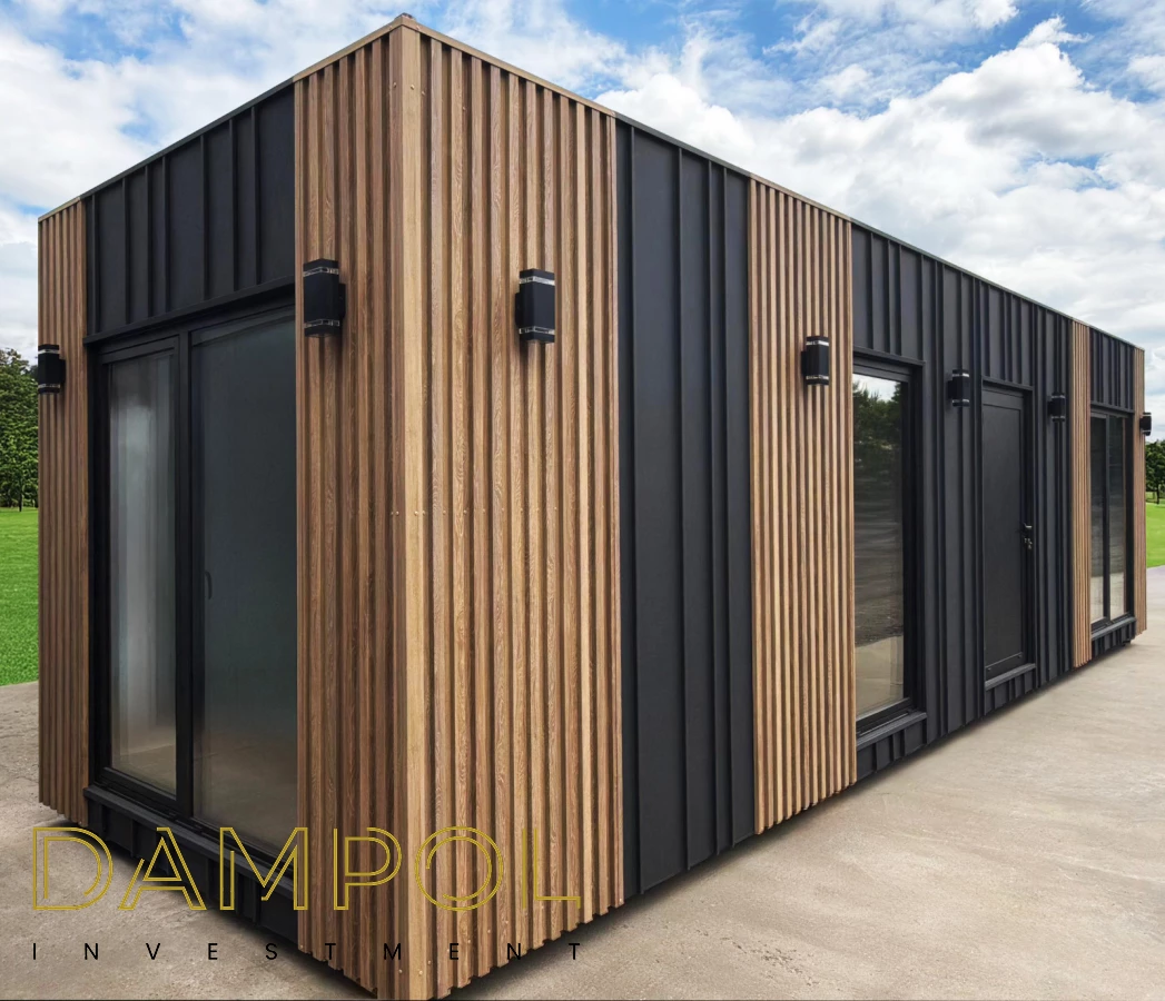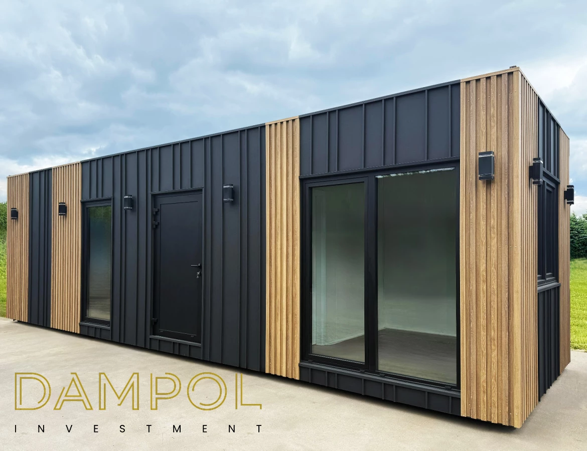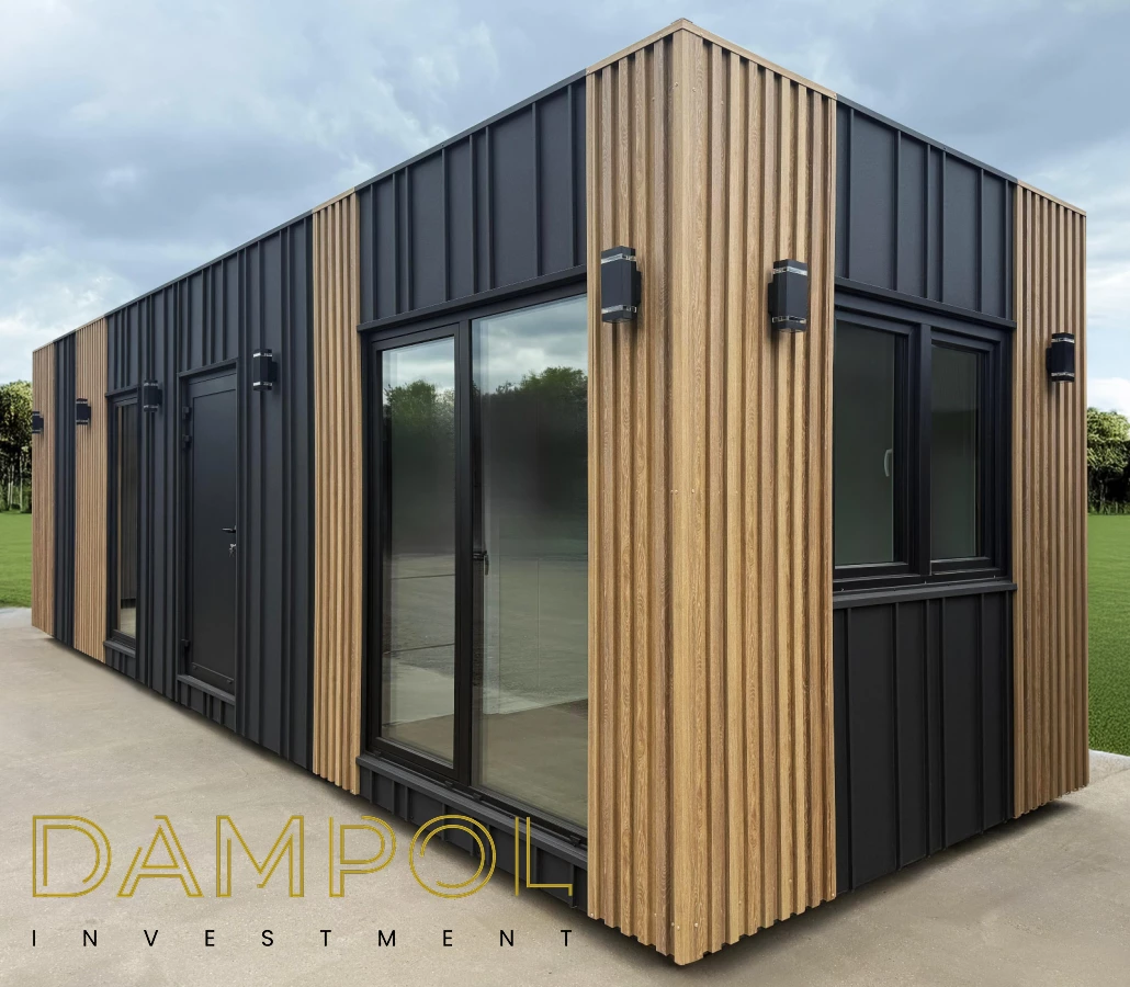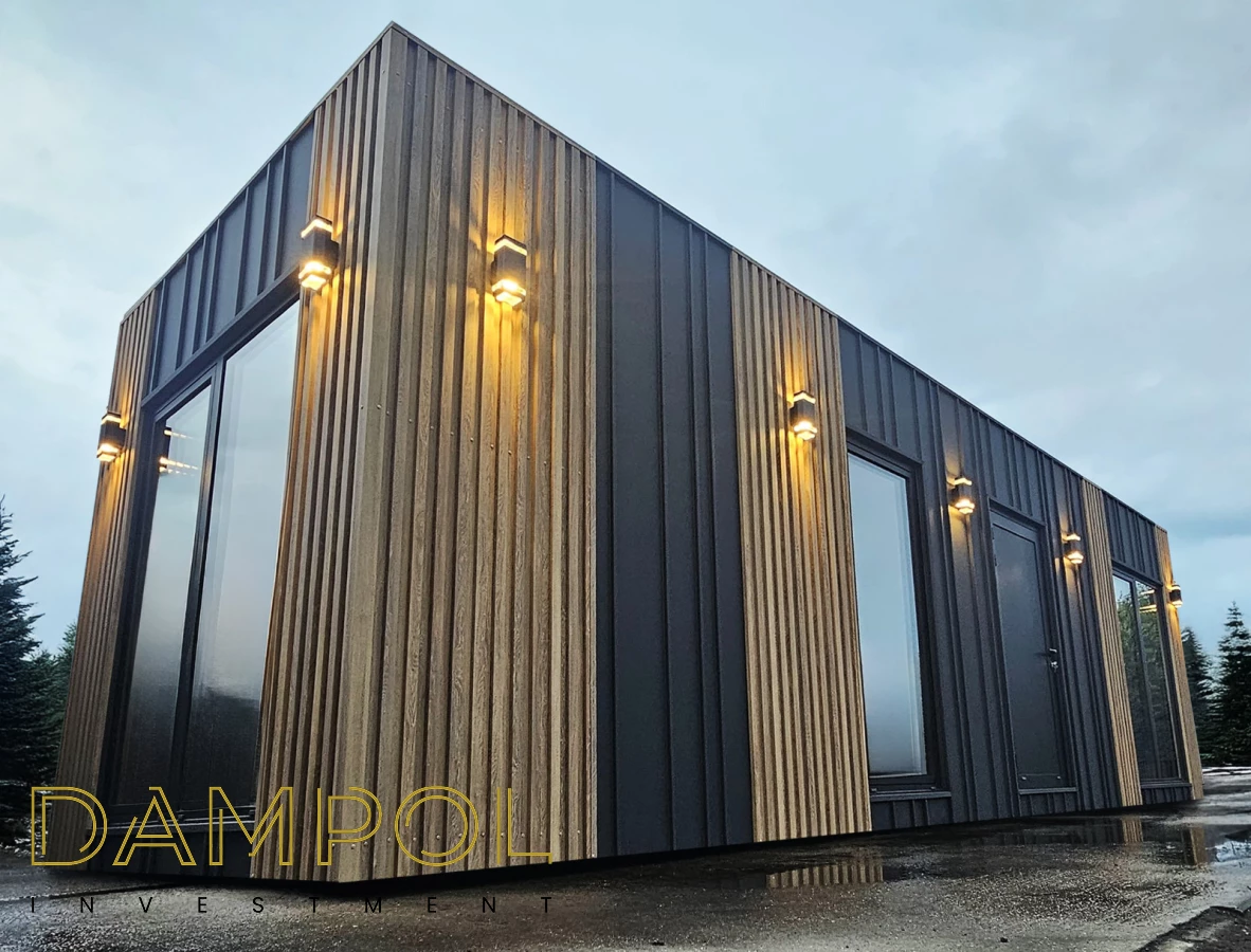 Vnitřní výška 262->252, krov plus úhelník, vyrobeno kompletně ze sendvičových panelů s polyuretanovým jádrem, uvnitř hladké panely, "teplé" zasklení černý rám, plné hliníkové dveře černé barvy, balkonové okno, hliníkové zasklení 2x - fix plus R/U, okno s dvojsklem PCV 140x120, samostatný pokoj s dveřmi, koupelna se sprchou , kuchyňský kout.