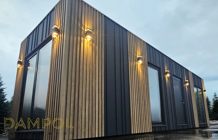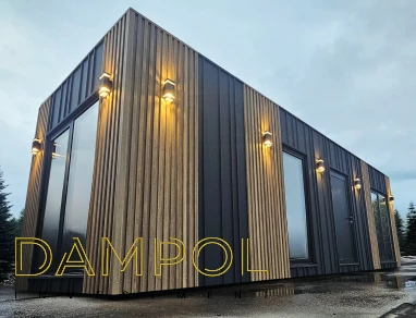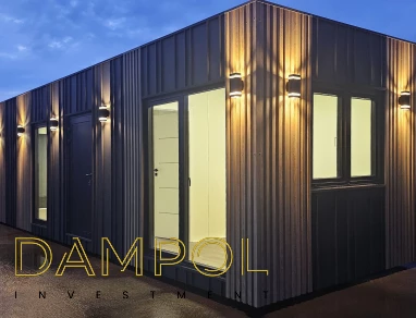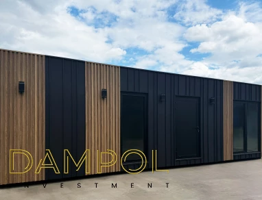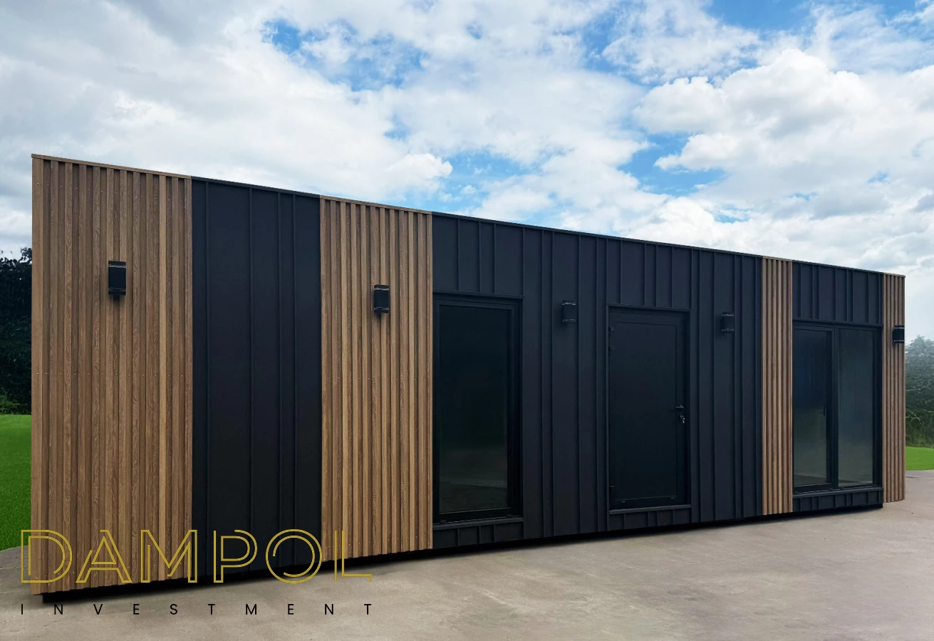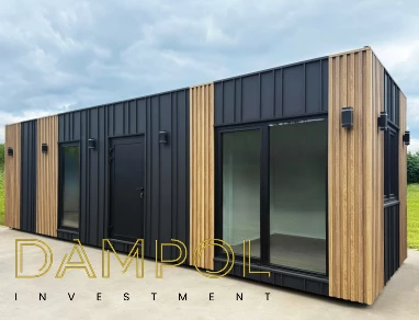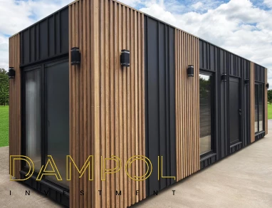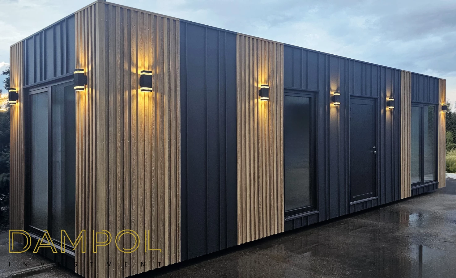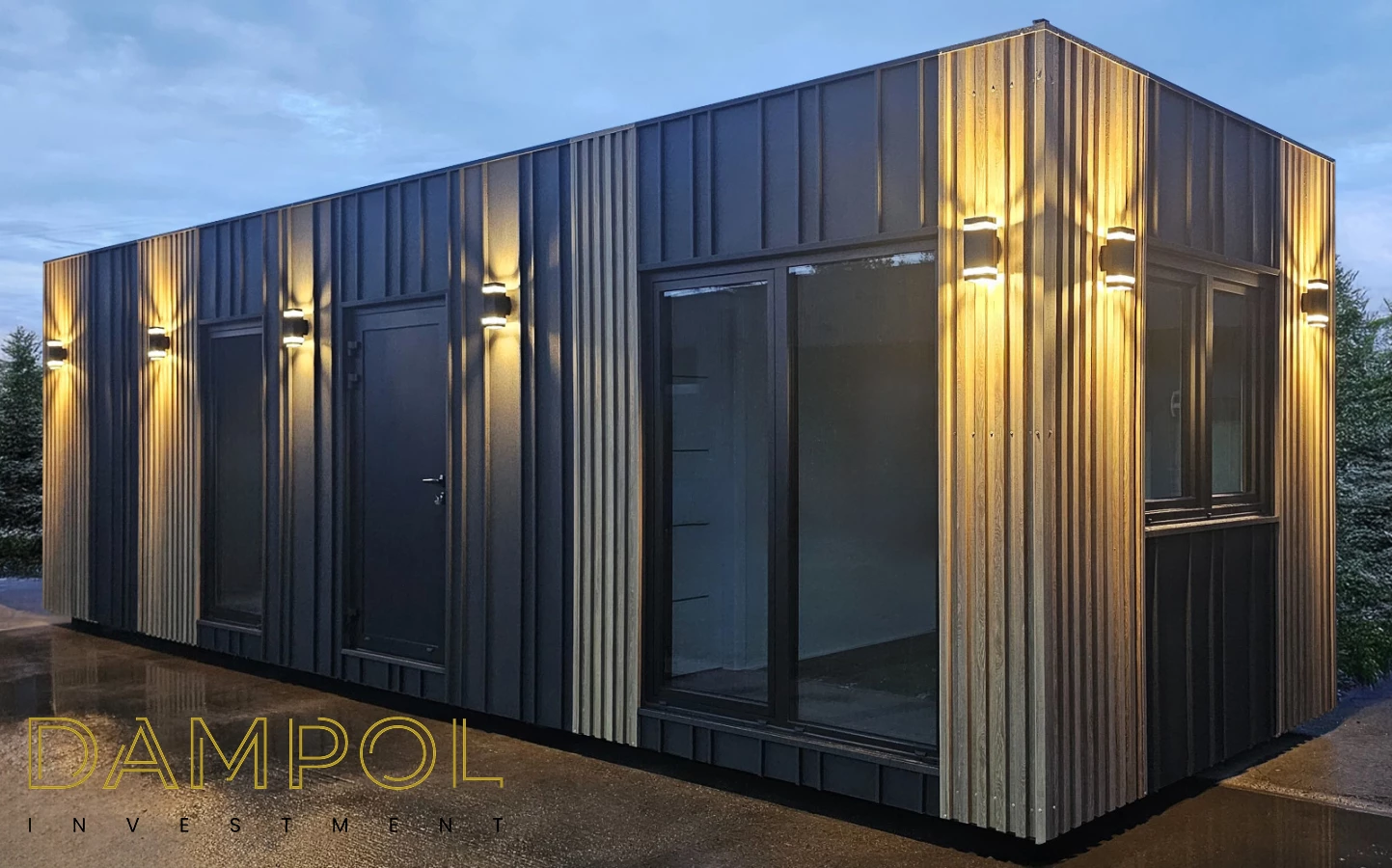 Vnitřní výška 262->252, krov plus úhelník, vyrobeno kompletně ze sendvičových panelů s polyuretanovým jádrem, uvnitř hladké panely, "teplé" zasklení černý rám, plné hliníkové dveře černé barvy, balkonové okno, hliníkové zasklení 2x - fix plus R/U, okno s dvojsklem PCV 140x120, samostatný pokoj s dveřmi, koupelna se sprchou , kuchyňský kout.