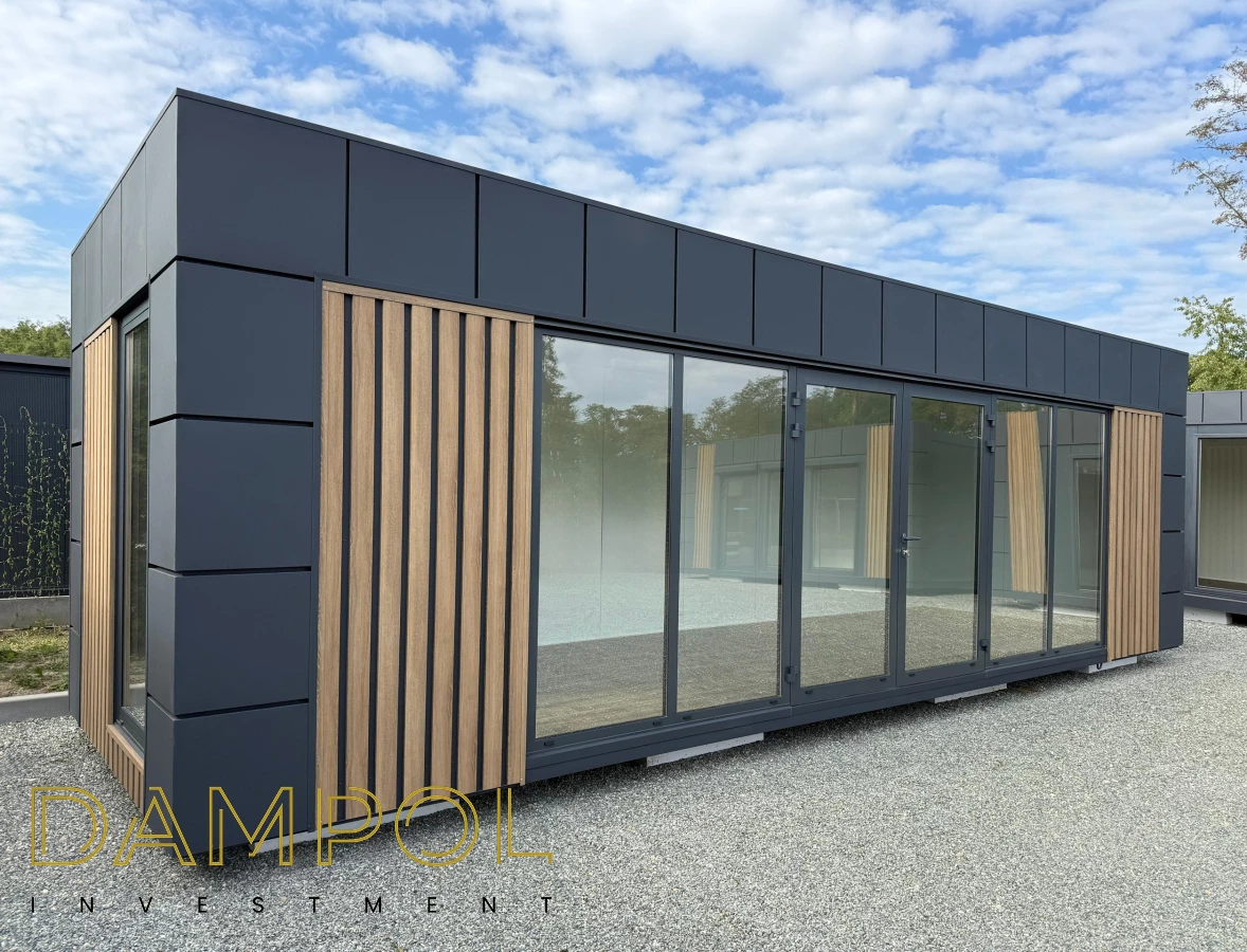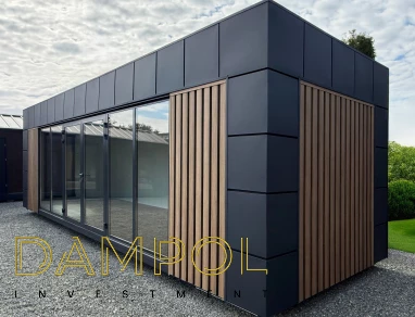 ze sendvičového panelu s 10 cm polyuretanovou výplní, uvnitř hladké panely, úhelník + podpěra na přední straně z uzavřeného profilu 80x80x3.